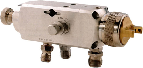 Built to withstand the rigors of high-speed production lines and harsh finishing conditions, the AGX automatic air spray gun is engineered for rugged reliability. Designed for use with industrial robots, reciprocators and stationary mounting, the AGX spray gun’s compact size allows mounting in tight areas. Simplified gun design for greater reliability and ease of maintenance. Detachable spray head for fast needle packing replacement. AGX-552 guns are specifically equipped with carbolloy fluid tip and needle for use with water-mix materials and abrasives. All AGX models include 300-grade stainless steel fluid passages. Circulating capability standard.
