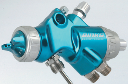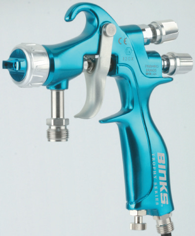The Binks Trophy Series Spray guns are ideal for a wide variety of materials and viscosities. These versatile guns can be used in all types of industrial applications, from wood to metal to ceramics. The Trophy Series guns will spray them al