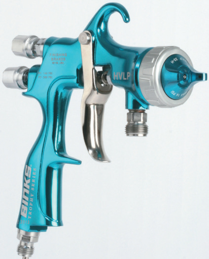 Binks Trophy Series Spray Guns are the premier spray guns for use in pressure, gravity and siphon applications. The lightweight and ergonomic design provides unsurpassed comfort and control. The large selection of fluid nozzles and needle materials means that this versatile gun can be used in almost any coating application. Available in HVLP, LVMP or Conventional spray technologies, these guns incorporate the latest advanced atomization technology. Use the Binks Trophy Series Spray guns to achieve a consistent fine finish with a wide range of industrial coatings.