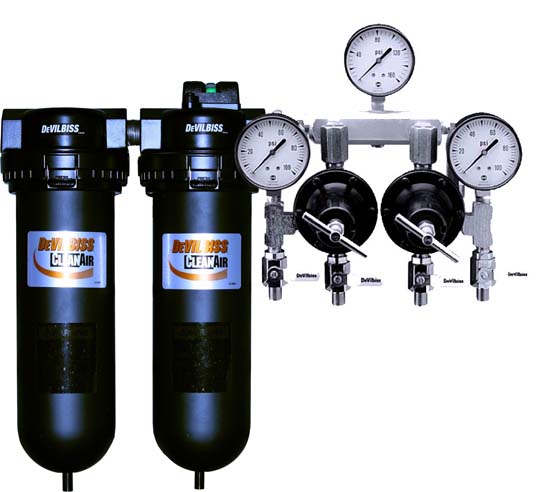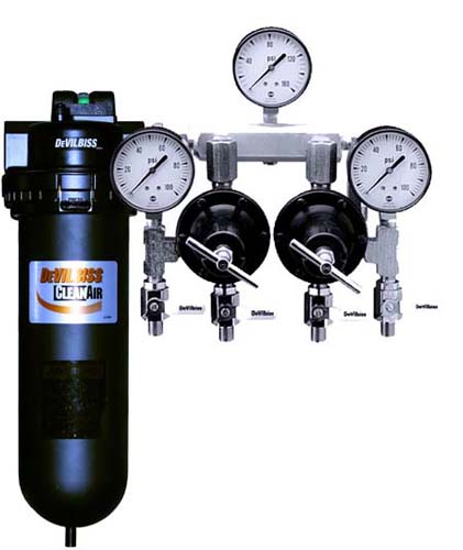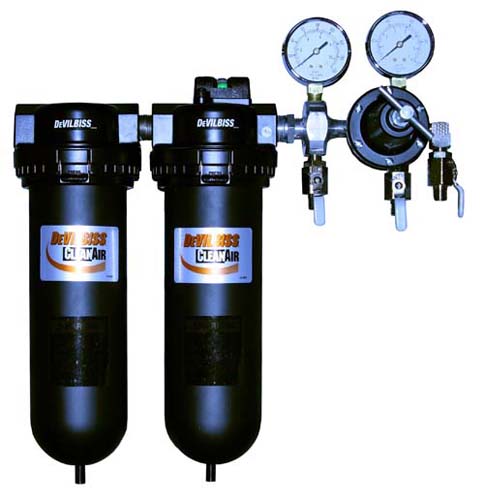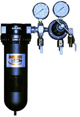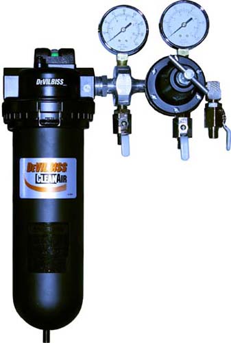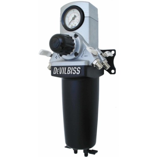 Contact UsFRC-650 All-In-One combines a filter, regulator and coalescer for shop air into one compact unit. Four 1/4″ NPS (M) ball valves with unrestricted air passages, (three regulated plus one unregulated outlet.) Ball valves inclined 45º—avoids kinking of hoses, which increases life span. Robust and durable. Solvent-resistant filter bowl and body is indispensible in the spray area. Solvent- and slip-resistant knob for easy air adjustment. Automatic drains at each stage eliminate water build-up—no need to manually drain.