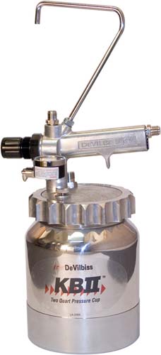 Contact UsKB II Series 2-quart cups feature a “pistol grip” carrying handle, and right- or left-handed design for comfort and ease of handling. An easy-open lid and wide cup mouth allow for fast filling and cleanup. KB II Series cups also feature a solvent-resistant check valve, a 0-30 psi air gauge, and a wide base for greater stability. KB II Cups are supplied with disposable cup liners, which reduce clean-up and solvent use. The unique lid liner also protects the underside of the lid, preventing check valve problems. Order KK-5051 disposable cup liner kit (20 each).