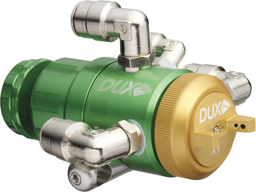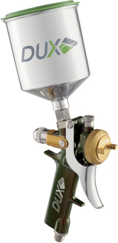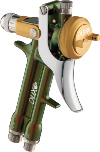 DUX spray guns are designed with shorter air passages, an upright handle, and fluid and air connections located at the base of the gun. This makes our spray guns lighter and easier to handle in tight spaces, while reducing operator fatigue.