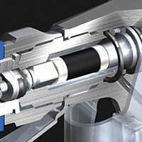 - Spring is outside fluid path to eliminate pack out and slow needle shut-off.