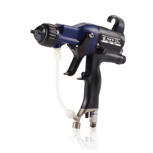 The 40 kV Booster gun gives you the transfer efficiency of a 60 kV gun, in a smaller, more compact size. The longer fluid tube on the High Conductivity (HC) lets you spray lower resistivity material. Pro Xp40 Air Spray electrostatic gun line is available in Standard, High Conductivity and kV Booster models.