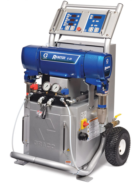 Equipped with material data and system diagnostics, the Reactor E-20 and E-30 proportioners provide total control for spraying foam insulation. Advanced features provide longer equipment life, more uptime for your spray day, and the overall Graco reliability and durability you’ve come to expect.