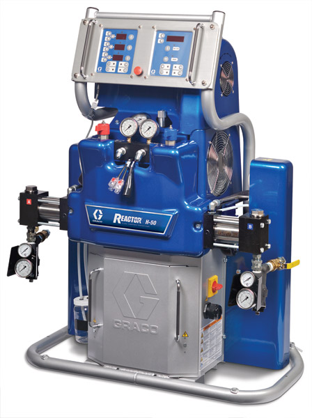 Graco’s Reactor E-10 is a small, ready-to-use system that helps you get in and get smaller jobs done fast without sacrificing performance. The Reactor E-10 sprayers are ideal for plural-component spray, joint-fill jobs and touch-ups. With smart controls that are easy to setup and simple to operate, the E-10 is a natural complement to any proportioning equipment line-up.
