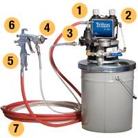 Triton is an air-operated diaphragm spray package that applies a high quality, decorative finish to wood and metal parts. Triton is a more effective alternative to traditional pressure pots and standard diaphragm pumps.